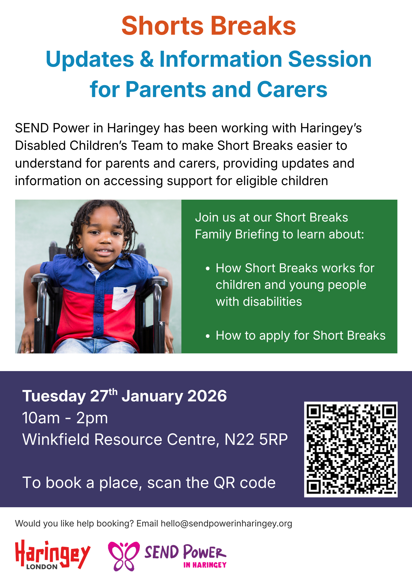 SEND Power in Haringey has been working with Haringey's Disabled Children's Team to make Short Breaks easier to understand for parents and carers, providing updates and information on accessing support for eligible children