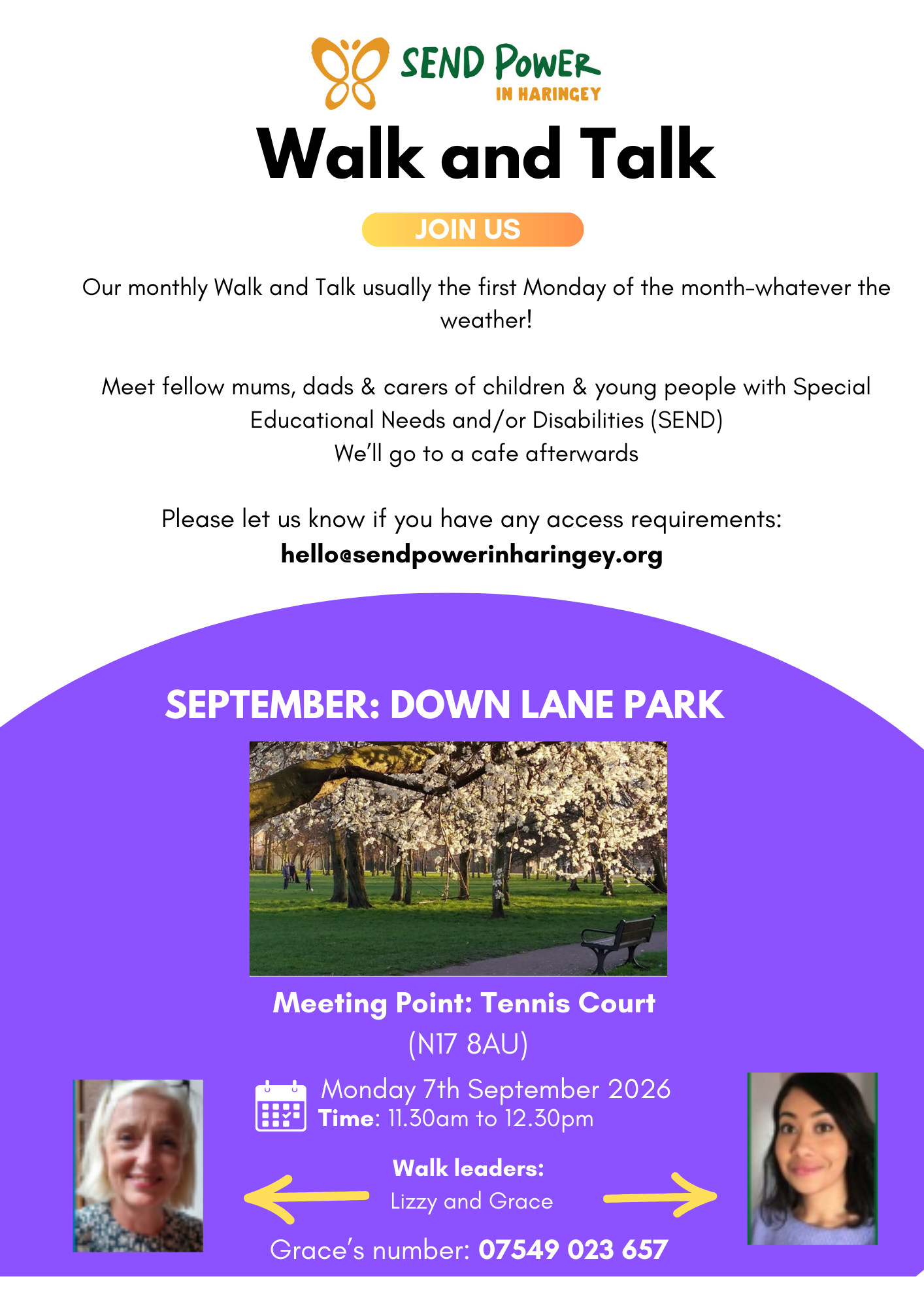 Each month we go for a lovely walk in a different Haringey park - whatever the weather! Come along!